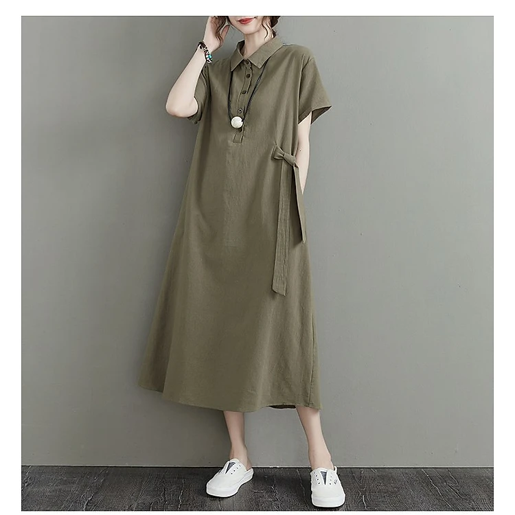 Đầm suông nữ thiết kế cổ đức bổ phối cúc trơn basic cá tính, chất đũi mềm mát cao cấp HB61
