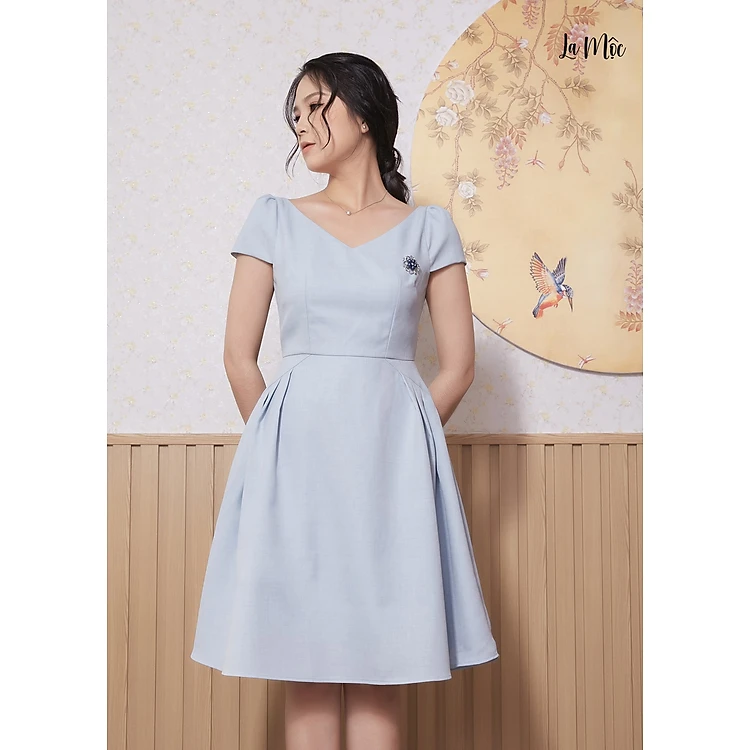 Đầm Công Sở Lụa Crep Dáng Xòe Xếp Ly Nhẹ Maxivic, La Mộc - LM012225