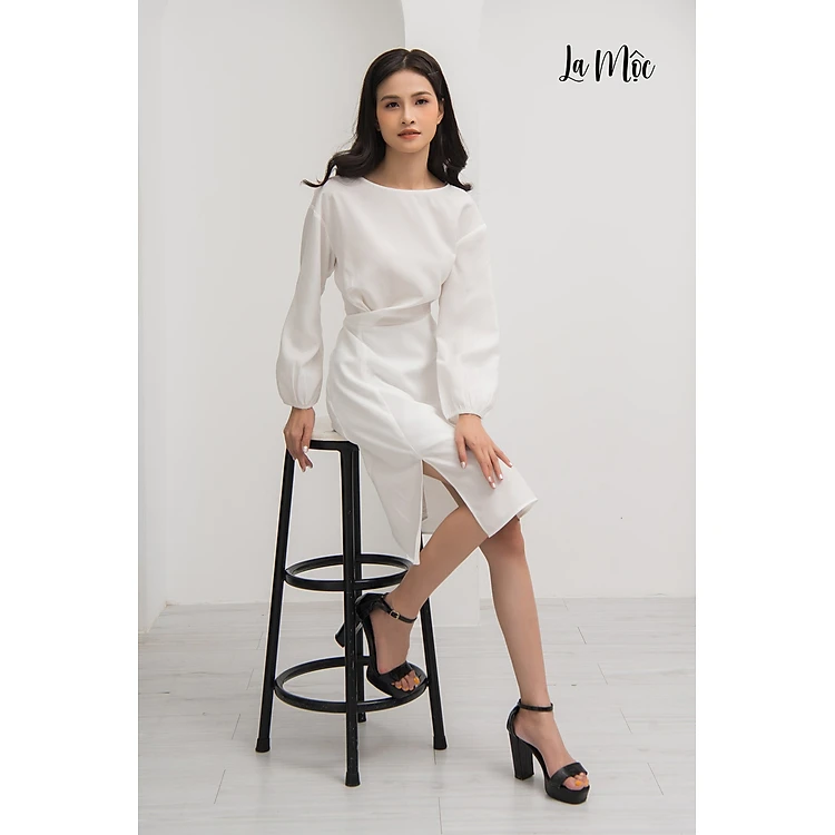 Đầm Công Sở Lụa Hàn Cổ Thuyền Xẻ Tà Maxivic, La Mộc - LM92114