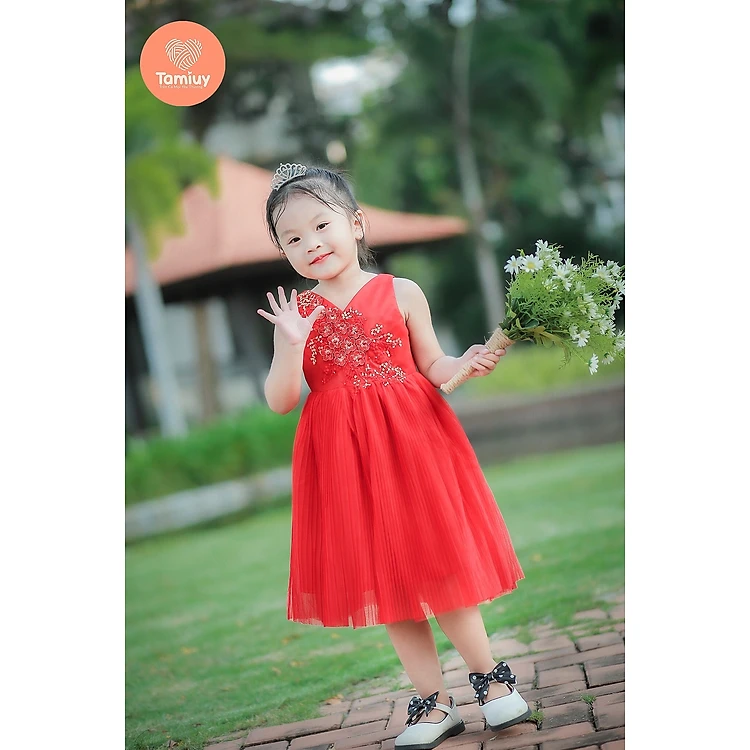 Đầm dạ hội tùng lưới dập ly kết hạt bẹt Tamiuy Kids nhí