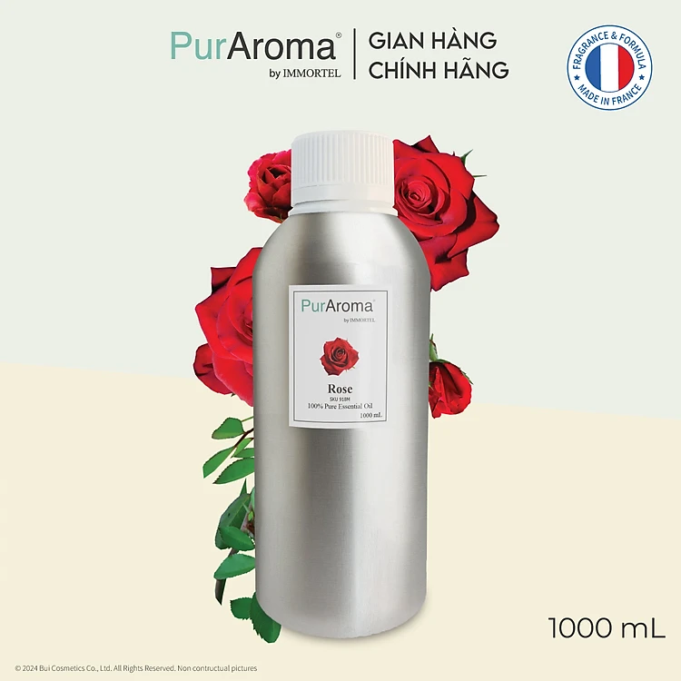 (Đậm Đặc | Chai Lớn) Tinh dầu HOA HỒNG nguyên chất PurAroma by IMMORTEL - Chính hãng Pháp
