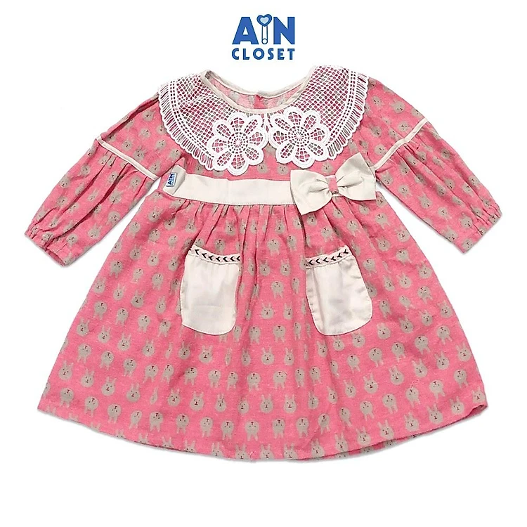 Đầm dài tay bé gái Thỏ hồng thô trà bông - AICDBGWMUYL4 - AIN Closet