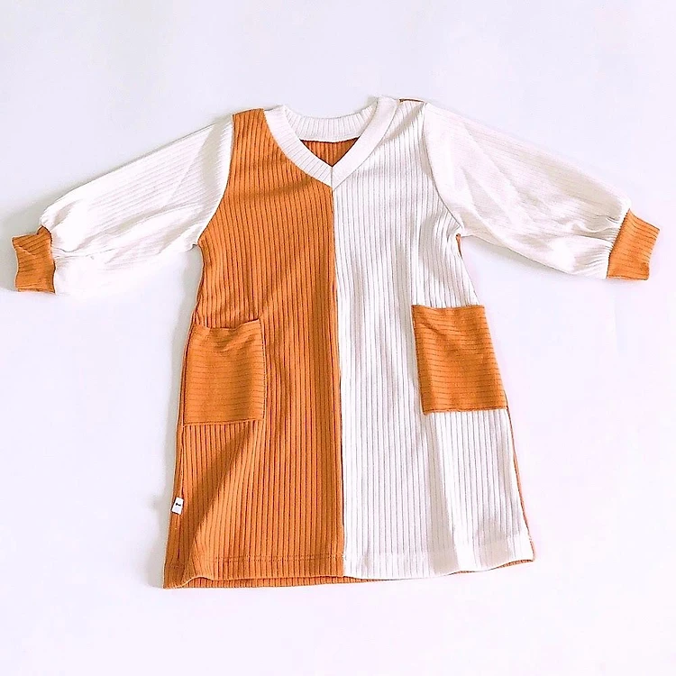 Đầm dài tay bé gái Vàng nâu thun gân - AICDBGCWPTIV - AIN Closet
