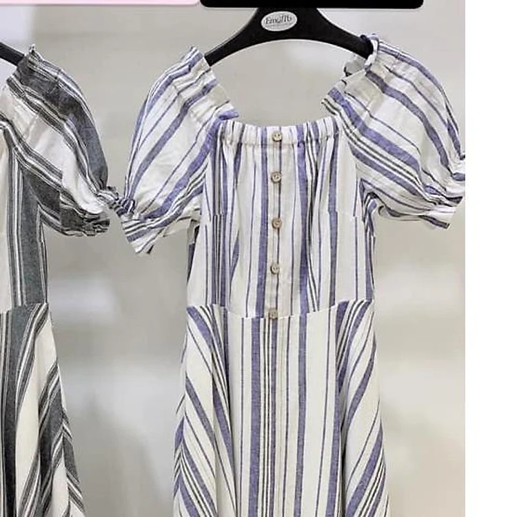 Đầm dáng xòe Emspo trễ vai kẻ sọc thời trang DM4034