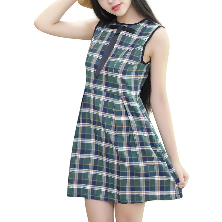 Đầm Dáng Xòe Thắt Nơ An Thủy SN594 - Caro Xanh lá