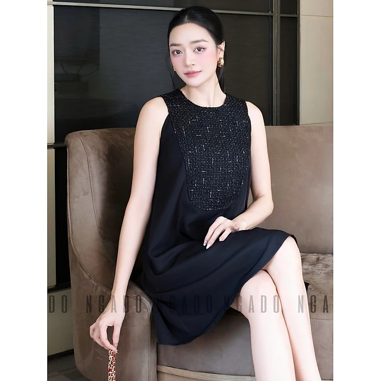 Đầm đen phối tweed NGADO , đầm nữ ngắn , đầm thời trang , đầm dự tiệc