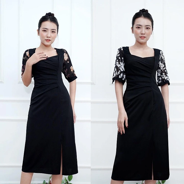 + SIZE XXL : Ngực 102cm – Eo 86cm – Dài tay 33cm – Dài đầm 111cm