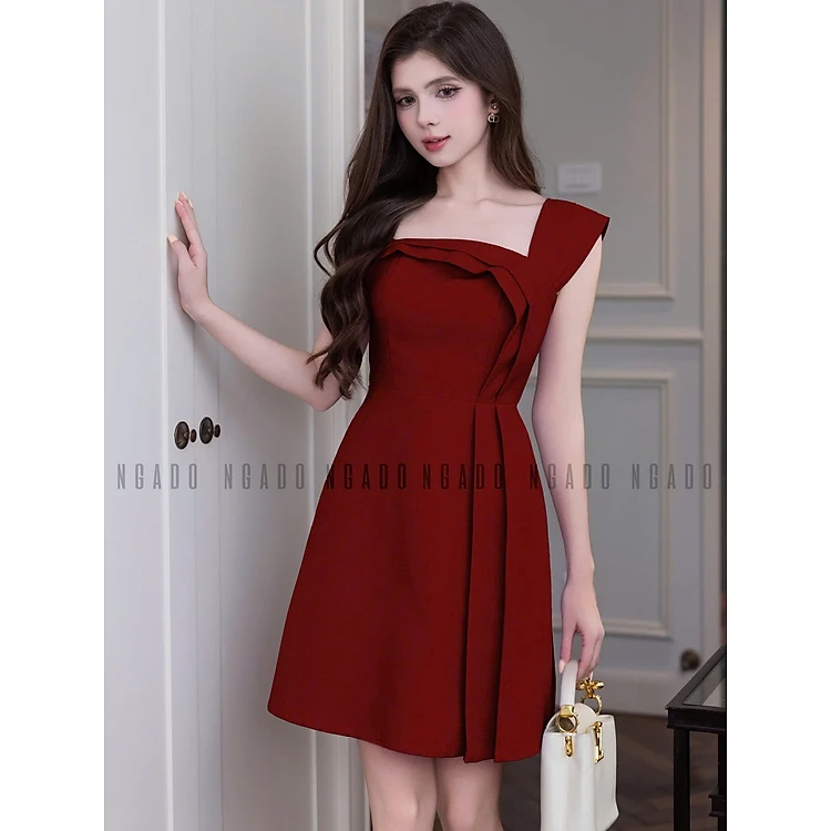 Đầm đỏ xếp ly NGADO , đầm kiểu Nữ , đầm dự tiệc , dạo phố