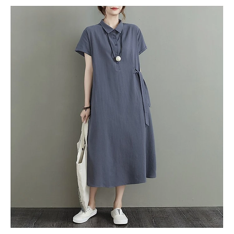 Đầm đũi suông dáng dài chữ A cổ Đức phối cúc ngực có túi 2 bên vải mềm mại, tôn dáng da61