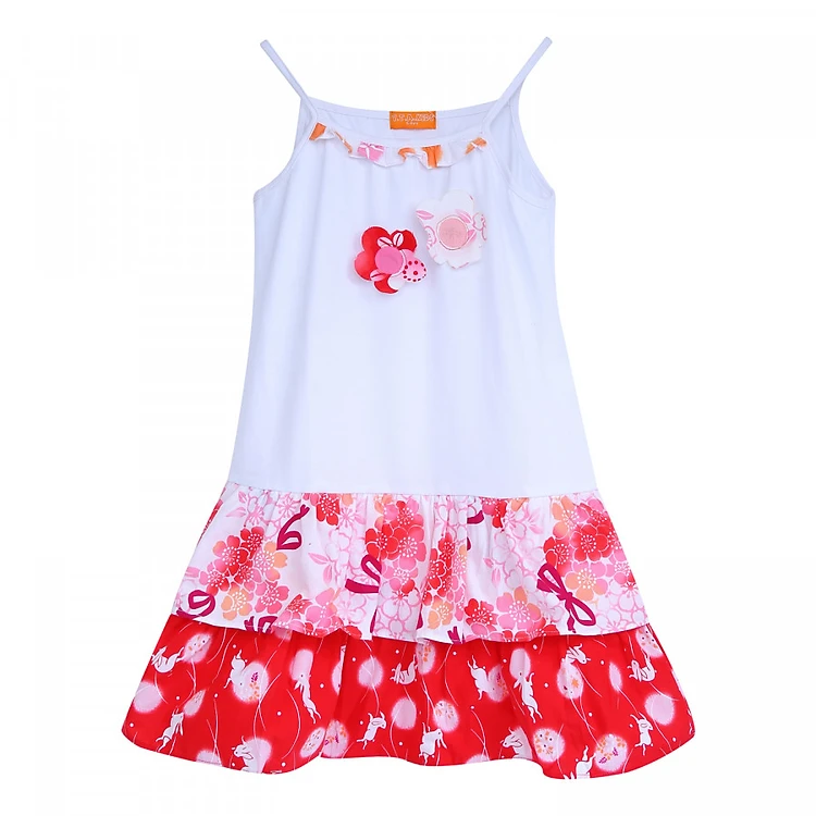 Đầm Hai Dây Bé Gái VTA Kids G31001 Chân In Hoa – Trắng