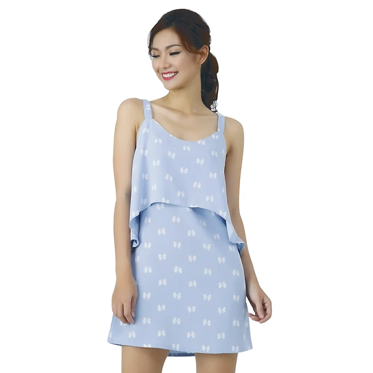 Đầm Hai Dây La Belle D215 Họa Tiết Nơ - FreeSize có thiết kế dạng xòe với 2 dây nữ tính, kết hợp cùng vạt áo rũ nhẹ, bồng bềnh, mang vẻ ngoài thanh thoát, duyên dáng cho phái đẹp. Đầm được may từ chất liệu Chiffon mềm mịn, độ bền màu cao trong suốt thời gian sử dụng. Đầm có gam màu xanh da trời tươi tắn với họa tiết nơ nhỏ xinh xắn, dễ dàng kết hợp với túi xách, đồng hồ, dây chuyền,...