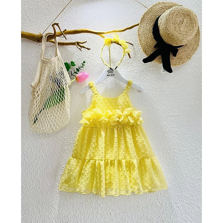 Đầm hai dây mùa hè cho bé gái đi chơi du lịch từ 12-30kg chất voan tơ mềm mát (kèm cài tóc)