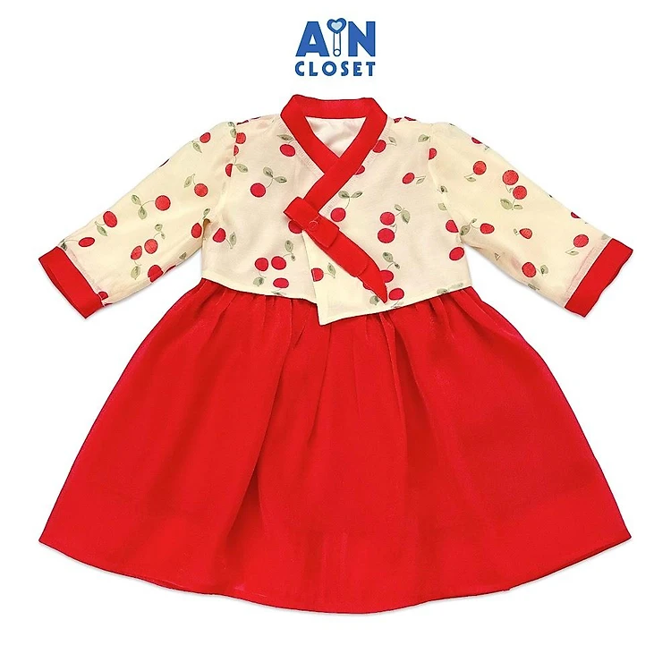 Đầm Hanbok cách tân bé gái họa tiết Cherry đỏ tơ ánh nhủ - AICDBGYJIPQM - AIN Closet