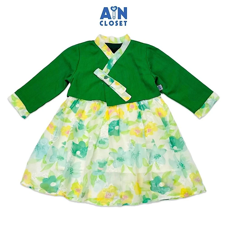 Đầm Hanbok cách tân bé gái họa tiết Hoa xanh tơ ánh nhủ - AICDBGMAEG4B - AIN Closet