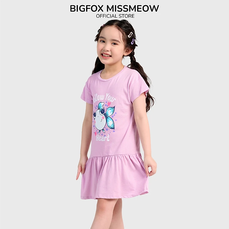 Đầm Hè Cho Bé Gái Miss Meow Tới Size Đại. Váy Cotton Thun Trẻ Em Bèo Gấu In Hình Cá Nhỏ 3-11 Tuổi