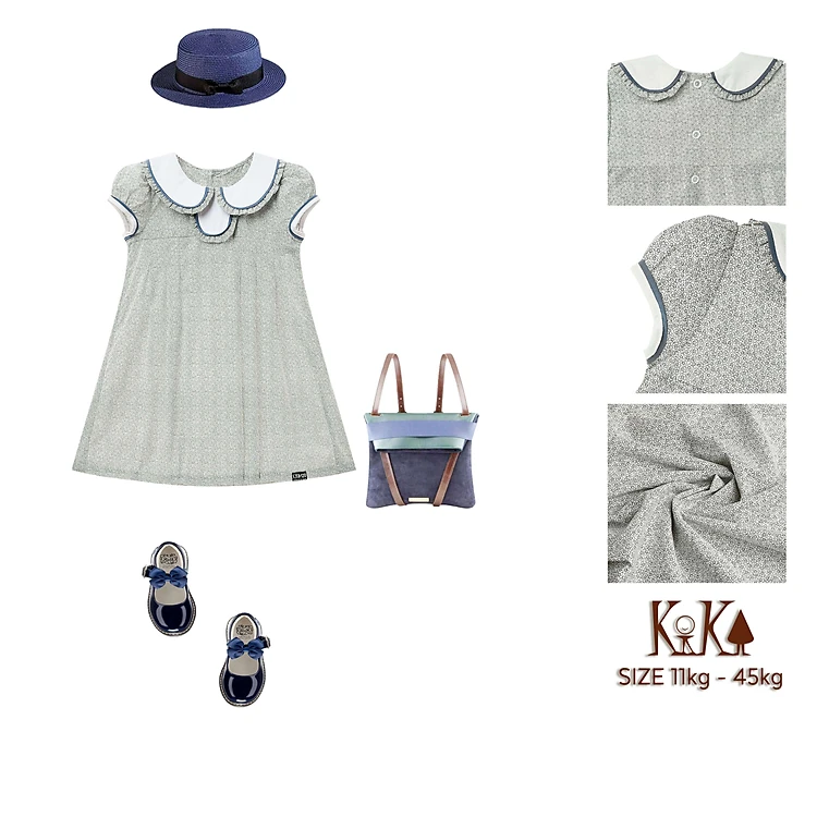 Đầm Hoa Cổ Sen Trắng Nhún 3 Lá K114