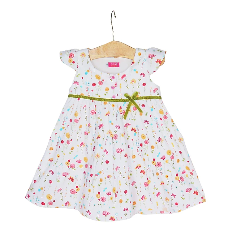 Đầm Họa Tiết Hoa Nơ Xanh Cuckeo Kids HC735 - Trắng