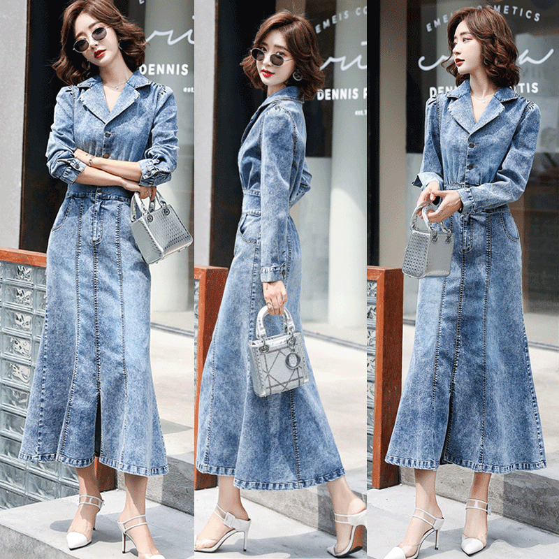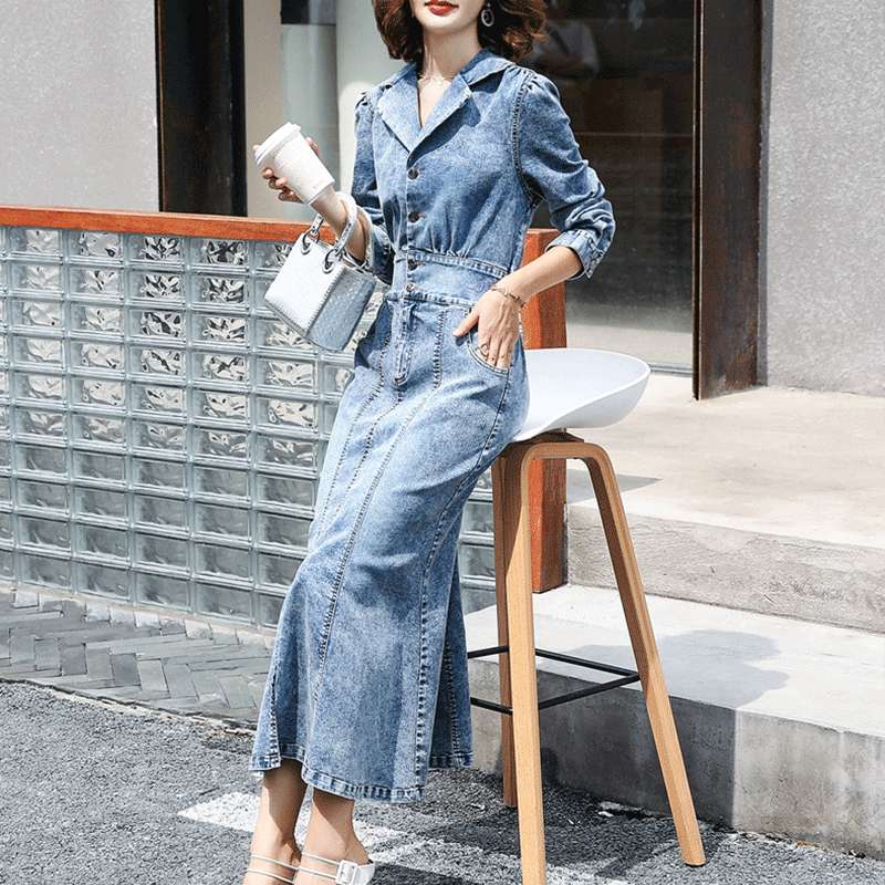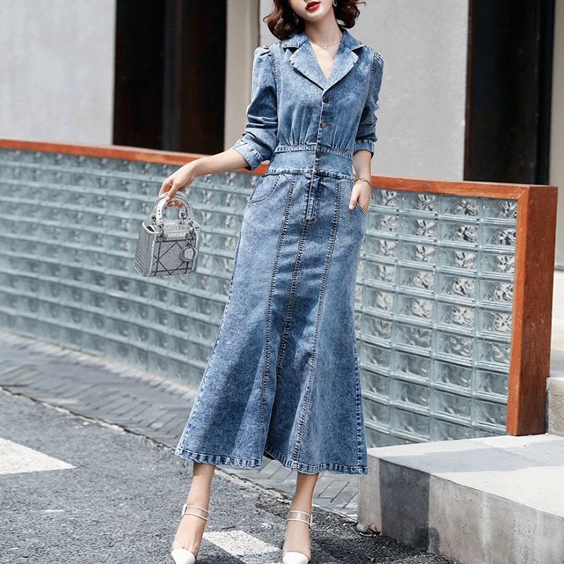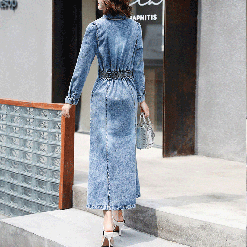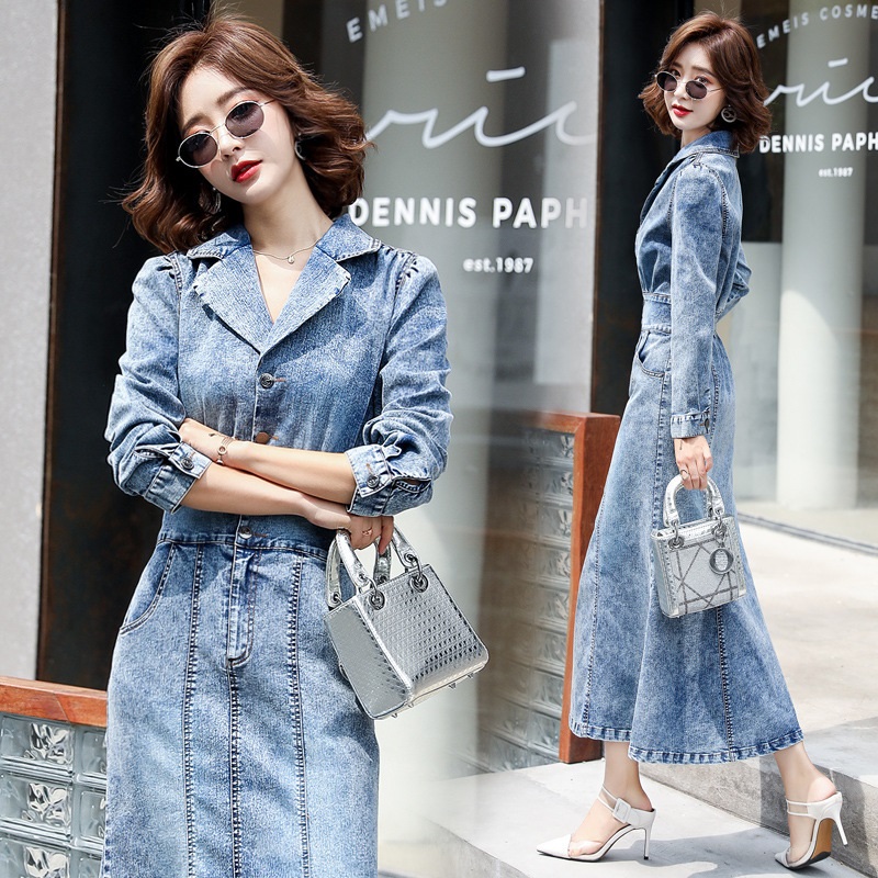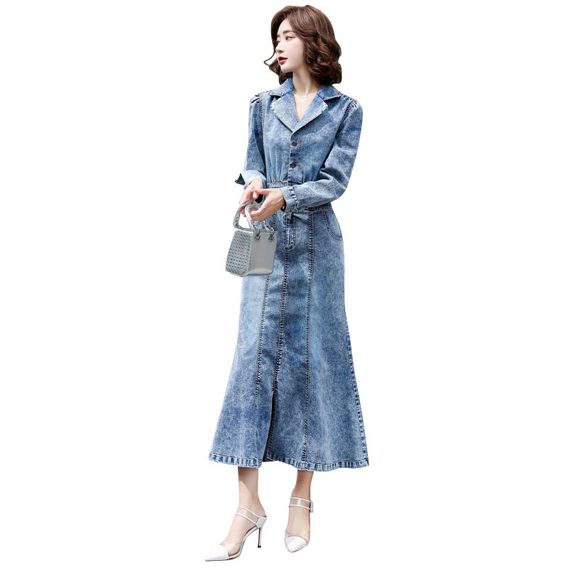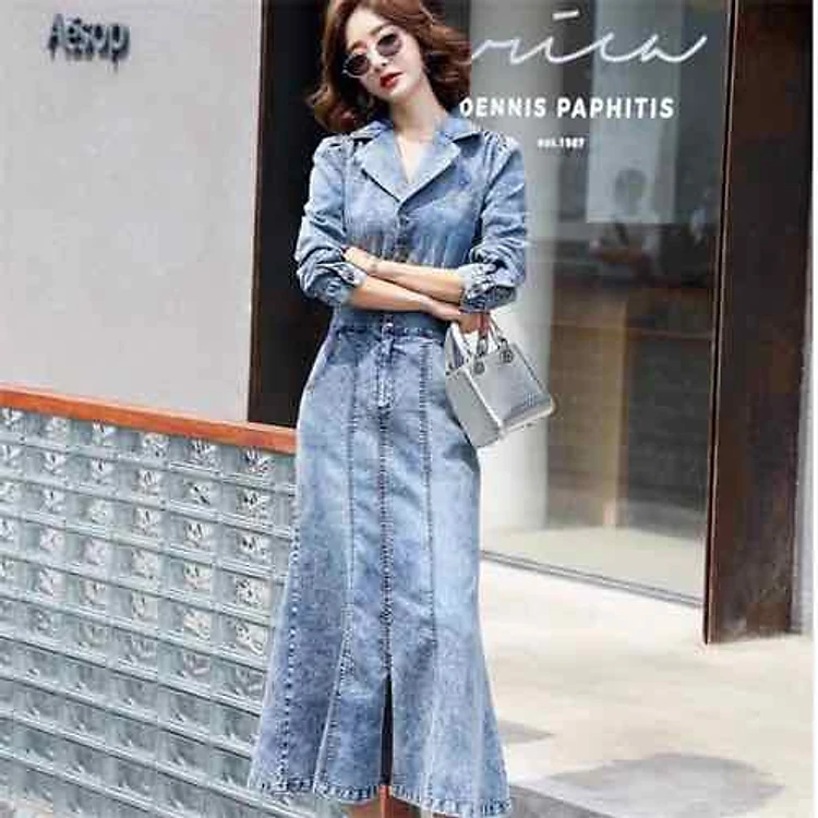 Đầm Jean nữ cao cấp thiết lế dáng dài nhún eo sang chảnh - NP1706