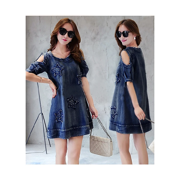 Đầm Jean Nữ Đính Hạt Thêu Ngôi Sao Thời Trang