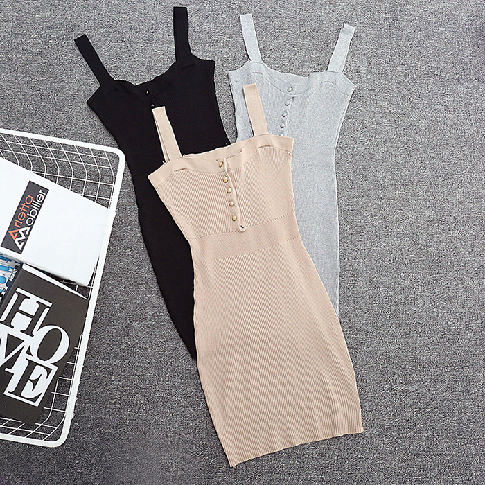 Đầm len dáng ôm 2 dây, chất len tăm mềm mịn, thời trang phong cách trẻ