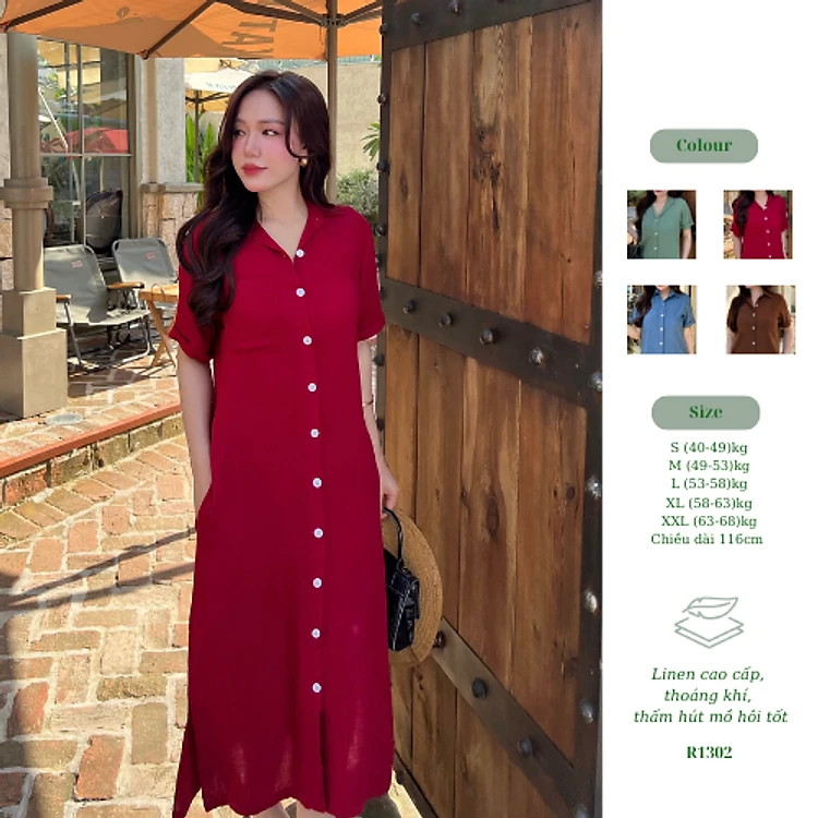 Đầm Linen Ruzimay Style Dáng Sơ Mi Dài R1300