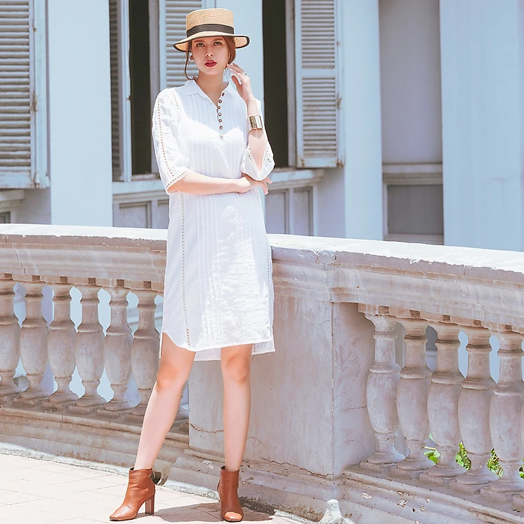 Đầm Linen Suông Đầm Kiểu Đẹp Thời trang thiết kế Hity DRE135 (Trắng Kim Cương)