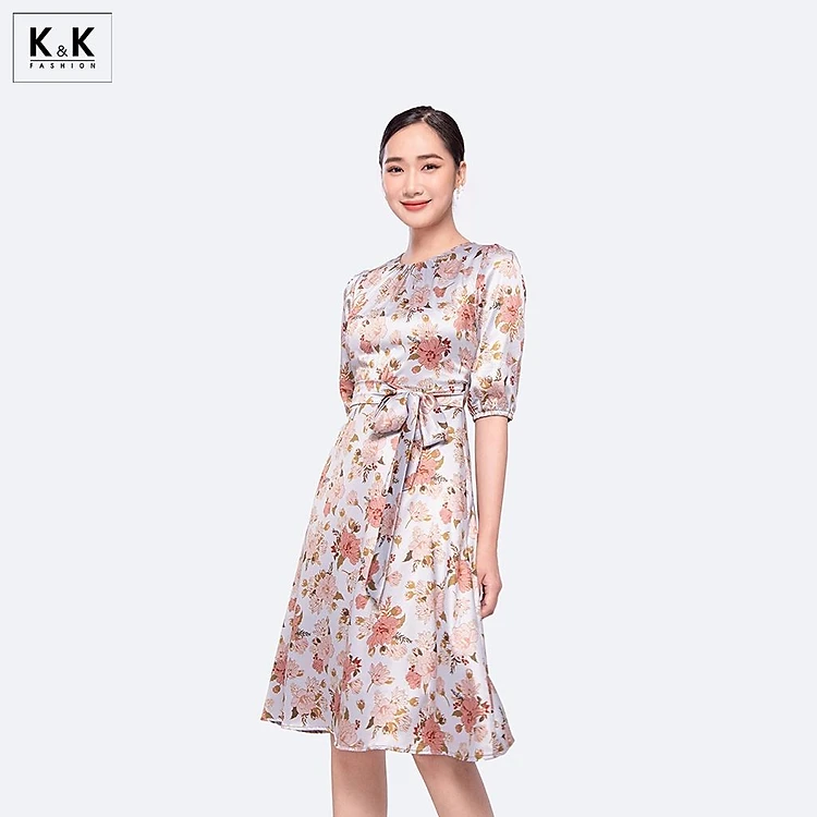 Đầm Lụa Hoa Dáng Xòe Cổ Tròn Tay Lửng K&K Fashion KK119-23