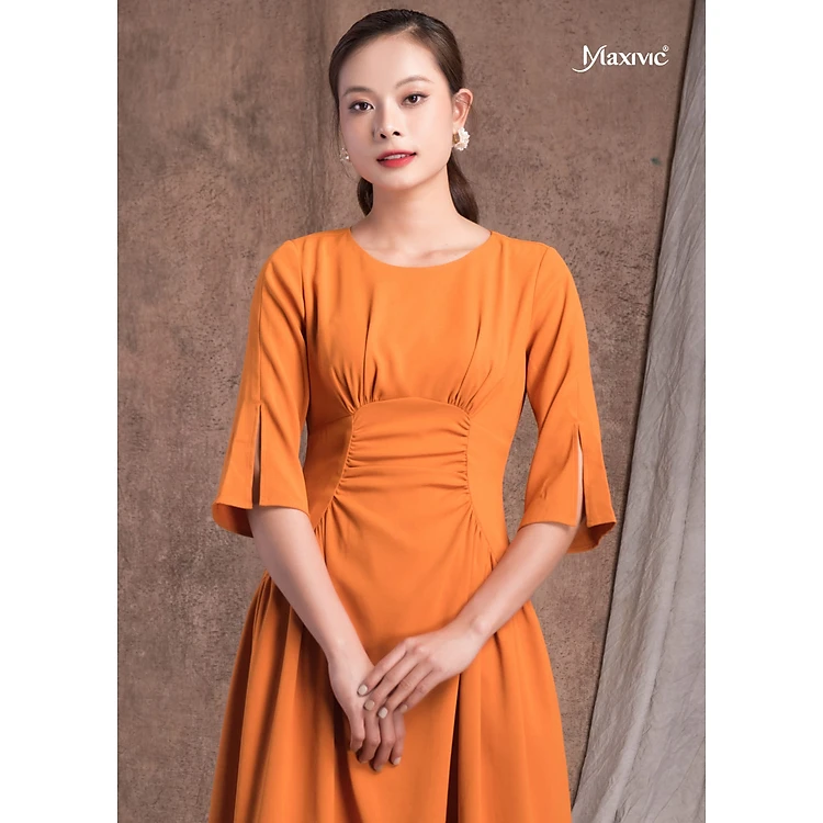 Đầm Lụa Ôm Tùng Xòe, Tay Lửng Cách Điệu Maxivic M01227016