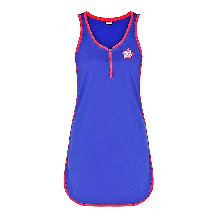 Đầm Mặc Nhà Woweco CEDNW1516TC - Xanh được thiết kế nữ tính với kiểu cắt xẻ 2 bên tà vừa gợi cảm vừa trẻ trung. Form đầm ôm nhẹ nhàng, trước ngực in chữ Super Star nổi bật. Với màu xanh tươi tắn, đầm sẽ giúp chị em phụ nữ sở hữu vẻ ngoài trẻ trung, năng động hơn.