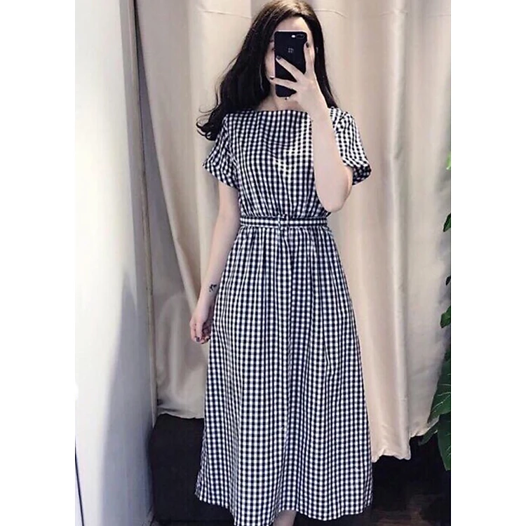 Đầm maxi caro kèm dây cột eo ( dưới 65kg) XDS05
