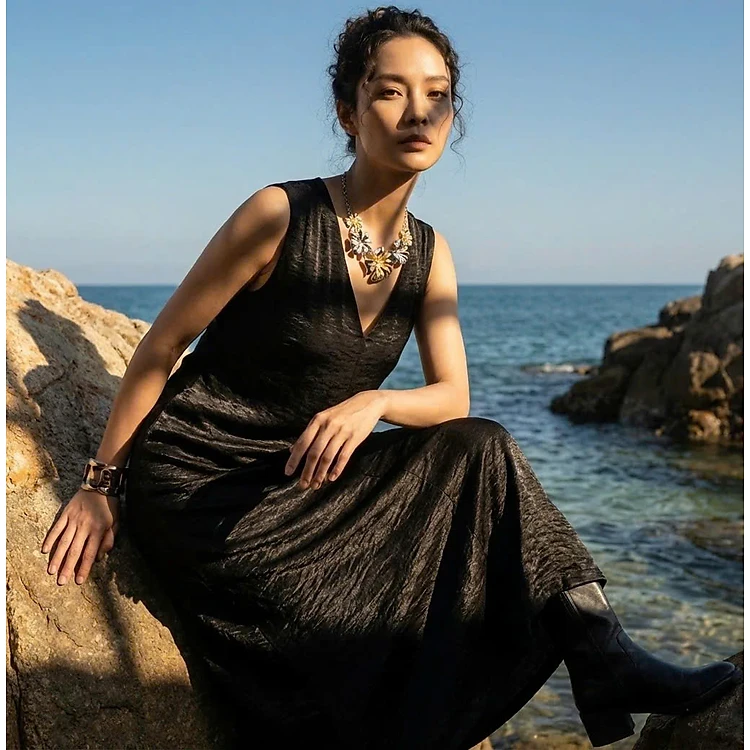 Đầm Maxi Dáng Suông Lụa Đen Hải Thạch Dre202 thời trang thiết kế Hity