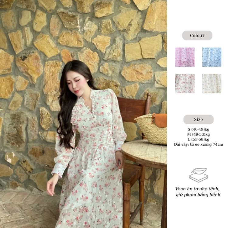 Đầm Maxi Ruzimay Dáng Dài Cổ Khuy Bèo R1000