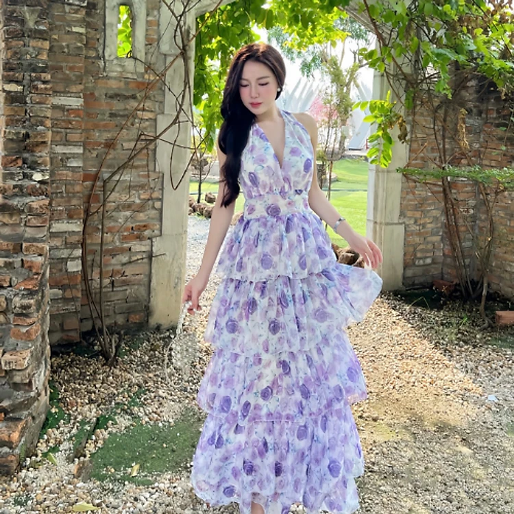 Đầm maxi Ruzimay Style Xếp Tầng Dáng Xòe Đi Biển R0300