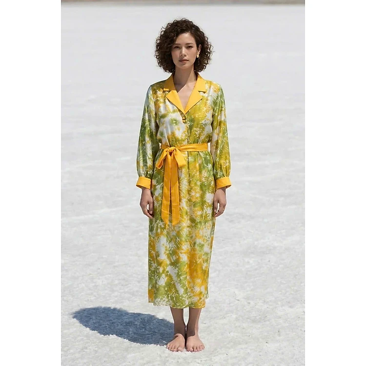 Đầm Midi Suông Cổ Ve Lụa Tơ Tằm Loang Màu Vân Kim Dre242 Thời trang thiết kế Hity