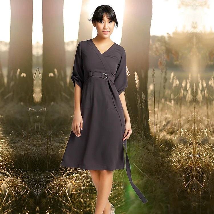 Đầm Thắt Eo Đầm Midi Suông Thời trang thiết kế Hity DRE097 (Xanh Rừng Nhiệt Đới)