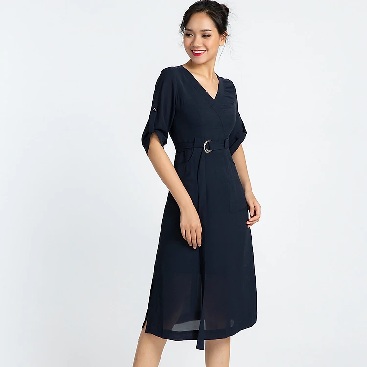 Đầm Công Sở Nữ Đẹp Đầm Midi Thắt Eo Thời trang thiết kế Hity DRE097 (Xanh Cổ Điển)