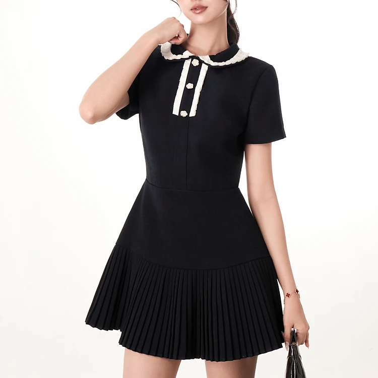 Đầm ngắn dáng A cổ phối ren tiểu thư tay phồng công sở Poise Miều Est.2013