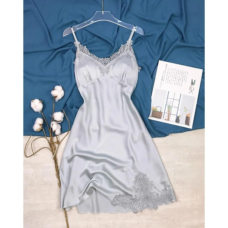 Đầm ngủ nữ mặc nhà 2 dây lụa cao cấp mềm mại hàng thiết kế MS03