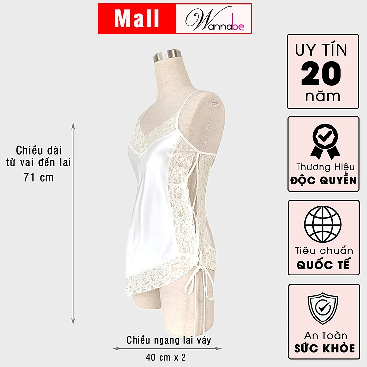 Đầm ngủ phi lụa cao cấp Wannabe DNS15 lai xéo vạt ngắn quyến rũ gợi cảm