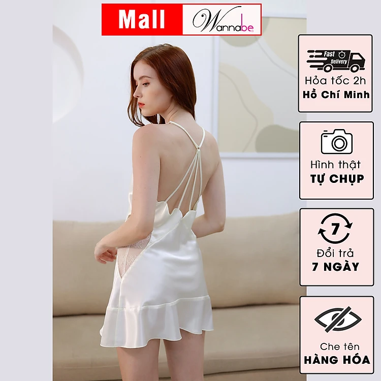 Đầm ngủ phi lụa cao cấp WANNABE DNS37 váy ngủ satin lụa phối ren eo tạo đường cong hoàn mỹ nữ tính xinh xắn