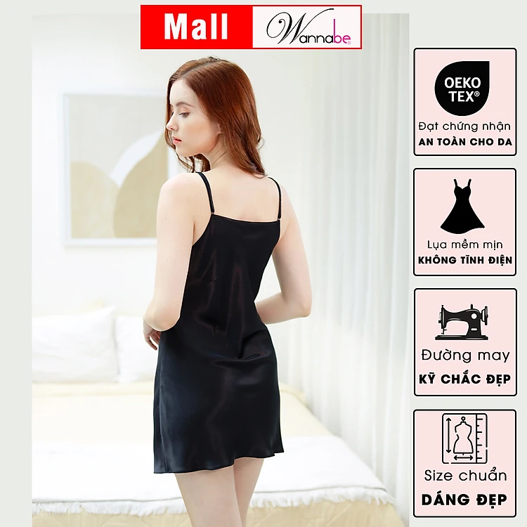 Đầm ngủ phi lụa cao cấp Wannabe DNS52 cổ chữ V xẻ sâu đan dây ngực quyến rũ gợi cảm