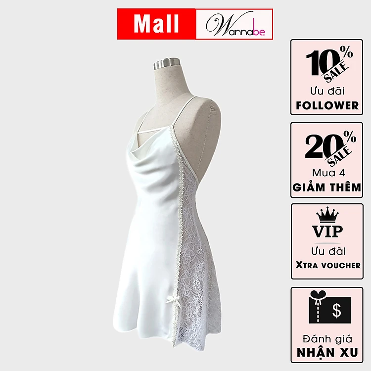 Đầm ngủ WANNABE DNS56 váy ngủ lụa phối lưới trong suốt 2 bên hông eo sexy gợi cảm đến khó cưỡng