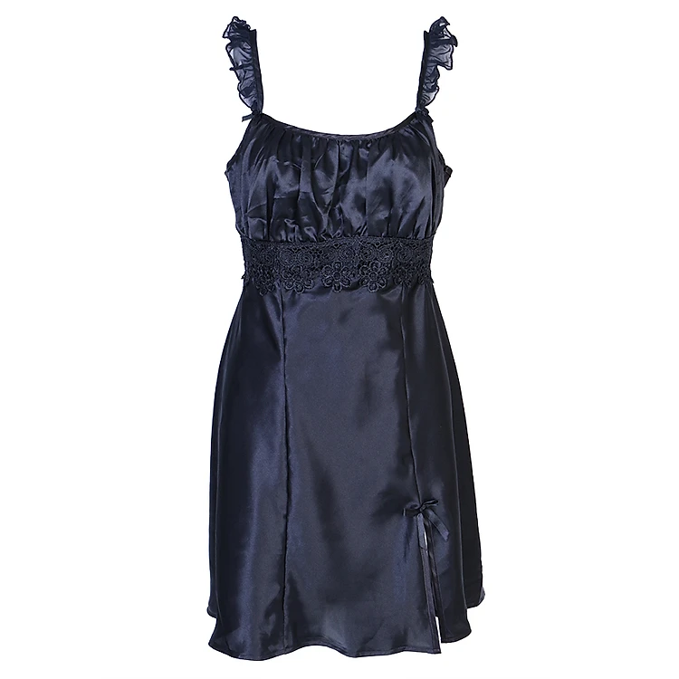 Đầm Ngủ Satin Cup Ren iBasic DN006 - Đen