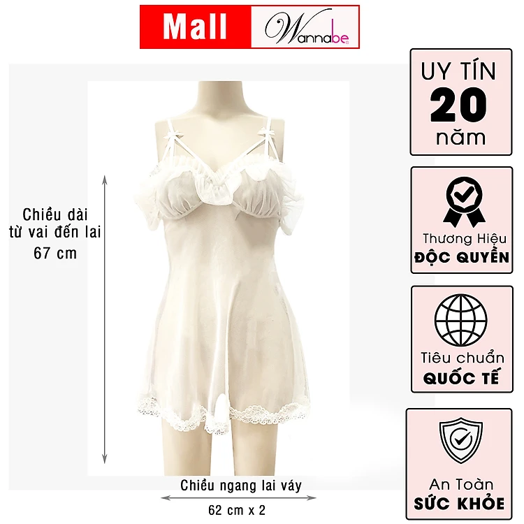 Đầm ngủ sexy Wannabe DNC09 nhún bèo ngực, cut-out lưng gợi cảm quyến rũ