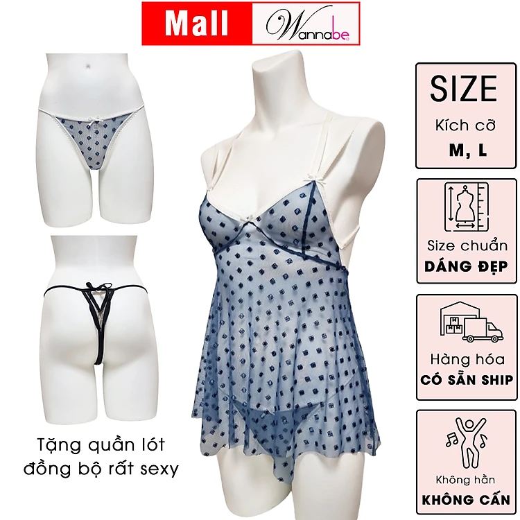 Đầm ngủ WANNABE DNC15 váy ngủ lưới trong suốt sexy tặng kèm quần đồng bộ khoe thân hình sexy gợi cảm của bạn gái