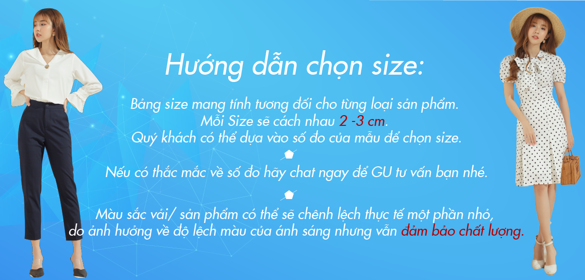 Lưu ý: Cân nhắc và so sánh với số đo của người mẫu mặc được ghi chú ở trên để chọn size vừa nhất. Nếu có bất kỳ thắc mắc nào, chat ngay nhé bạn yêu.