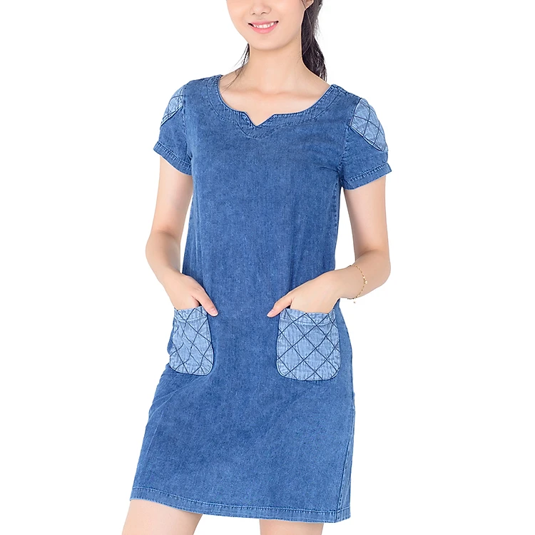 - Kiểu dáng đầm suông thiết kế độc đáo, thời thượng, màu xanh navy, có 2 túi, form đơn giản, dễ phối đồ, đường may tỉ mỉ, chắc chắn.