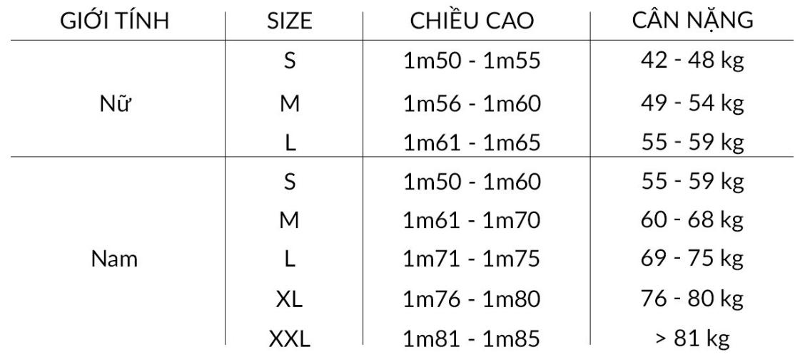 Hướng dẫn chọn size:
