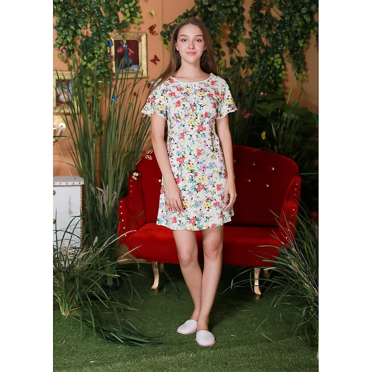 Đầm nữ Vincy kate xếp ly trước ngực hoạ tiết hoa