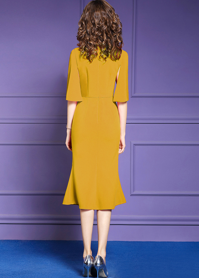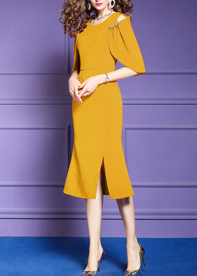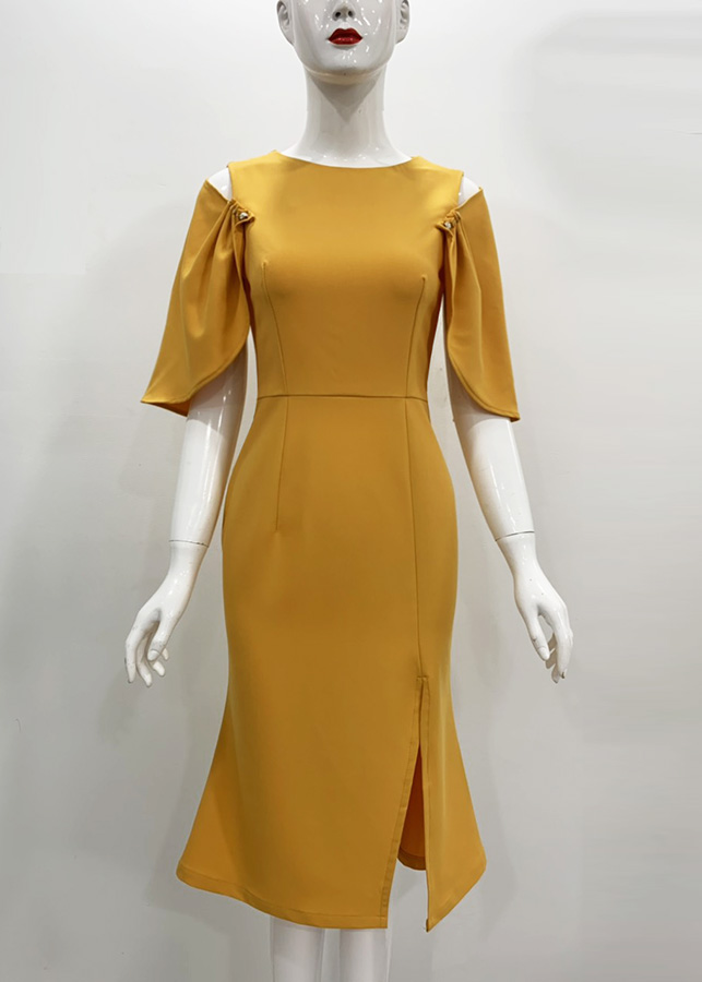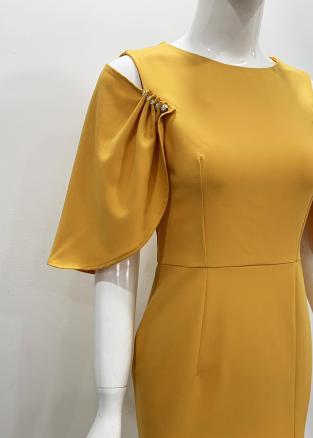 · Thiết kế dáng đầm ôm đuôi cá xẻ tà sang trọng, tay phối hạt cách điệu, chất liệu không co giãn nhưng vẫn tạo được cảm giác thoải mái.